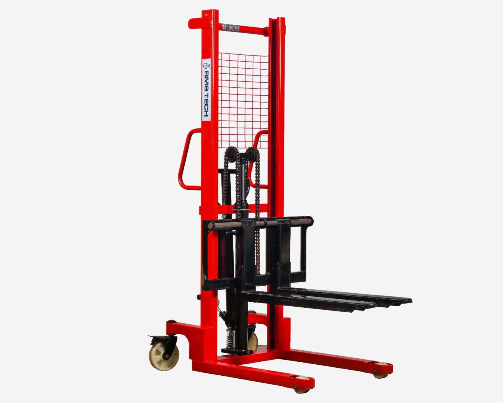 RMS TECH Manual Hydraulic Stacker is designed to simplify lifting and transporting of heavy materials in industrial and warehouse settings. With options in 1-ton and 2-ton capacities, both hand and foot-operated, it ensures maximum control and efficiency.