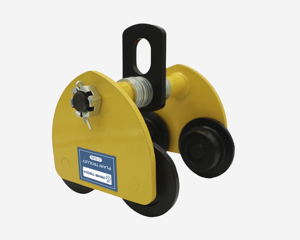 A manual trolley designed for smooth movement of loads along monorail or I-beam systems. Operated by pushing or pulling the load, it is ideal for light to medium material handling applications.
