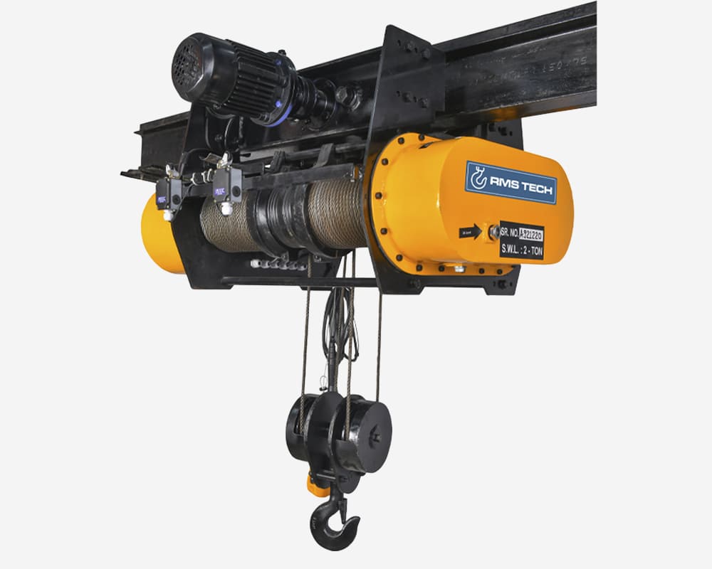 RMS TECH Electric Wire Rope Hoist is engineered for heavy-duty lifting applications requiring strength, precision, and durability. Designed and manufactured in India, it delivers smooth operation and high efficiency across a wide range of industrial uses.